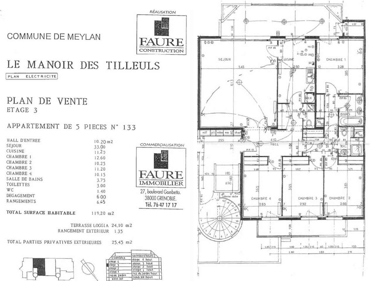 Au 3ème étage, très bel appartement 5 pièces, lumineux et traversant de 119m², composé d'un hall d'entrée, d'une cuisine équipée (plaques vitrocéramiques, four, hotte, lave-vaisselle) et d'un grand séjour de 33m² avec une terrasse donnant sur le parc, exposée sud-ouest.