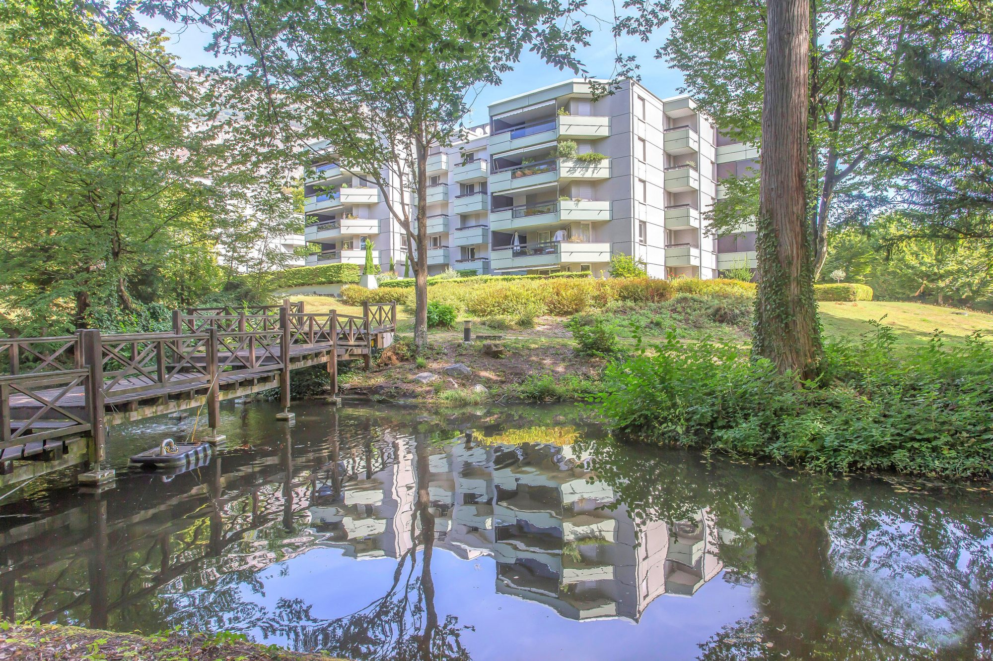 Dans un écrin de verdure au calme, copropriété de standing sécurisée, vidéophone, terrain de tennis et parc privé avec étang.