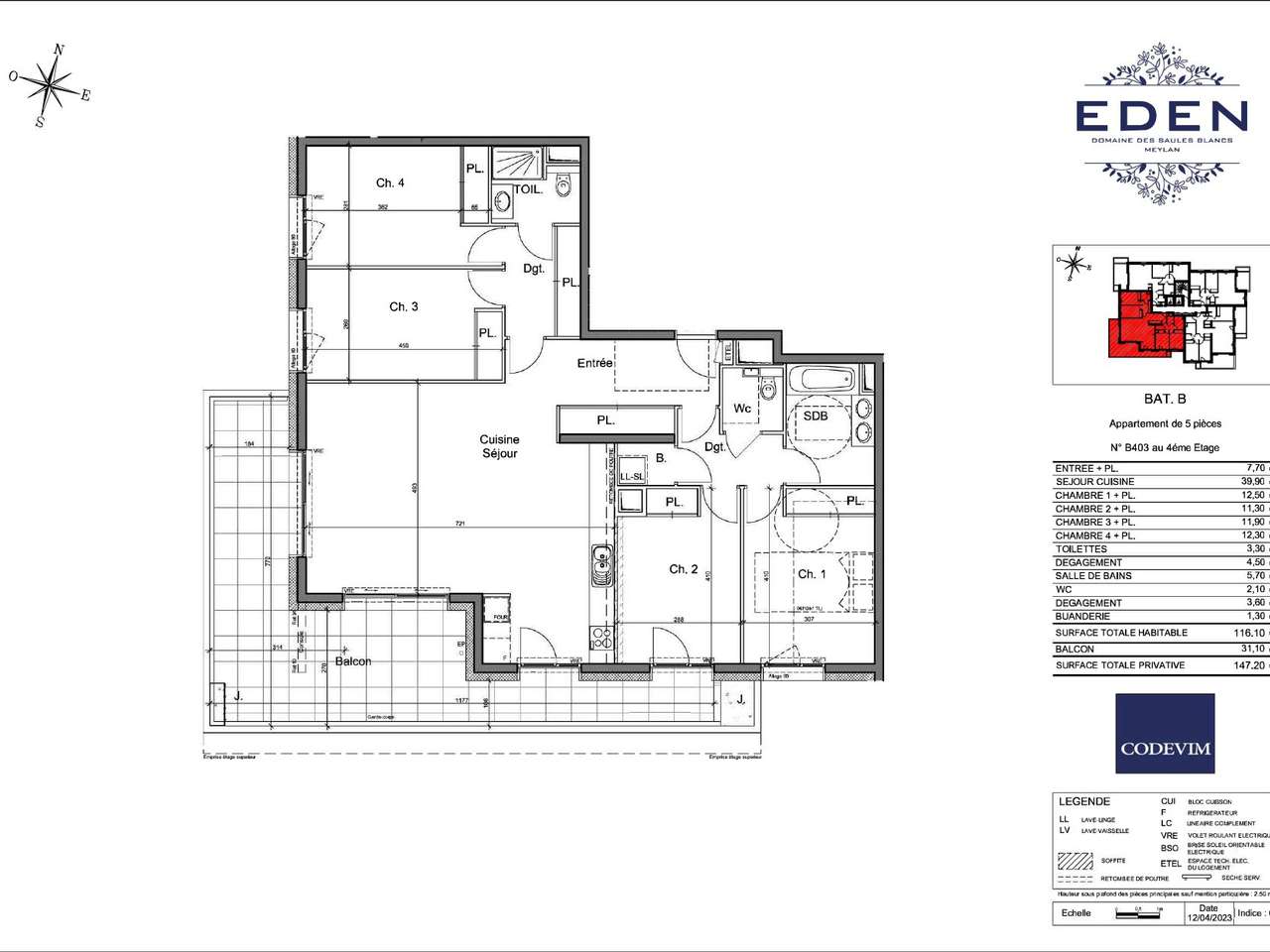 Sur la commune de Meylan Domaine des Saules Blancs idéalement situé, proche de toutes les commodités, Résidence L’EDEN, au cœur d’un parc privé et sécurisé, magnifique appartement T5 de 116,10m² au 4ème étage, orienté Sud Ouest, vous profiterez d'un spacieux salon lumineux donnant sur une belle terrasse de 31m² ornée de jardinières intégrées, offrant une vue dégagée sur les montagnes, parfaite pour vos moments de détente en plein air.