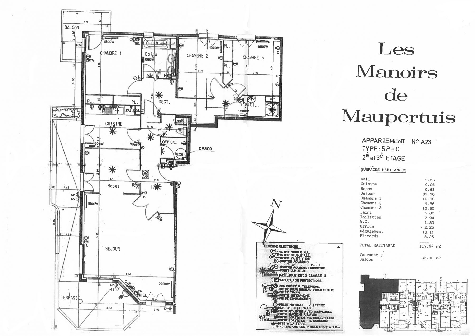 Dans résidence de standing ravalée, Les Manoirs de Maupertuis, appartement T4 de 117m² situé au 2ème étage avec ascenseur.